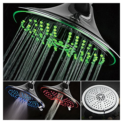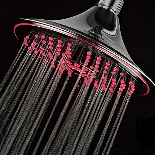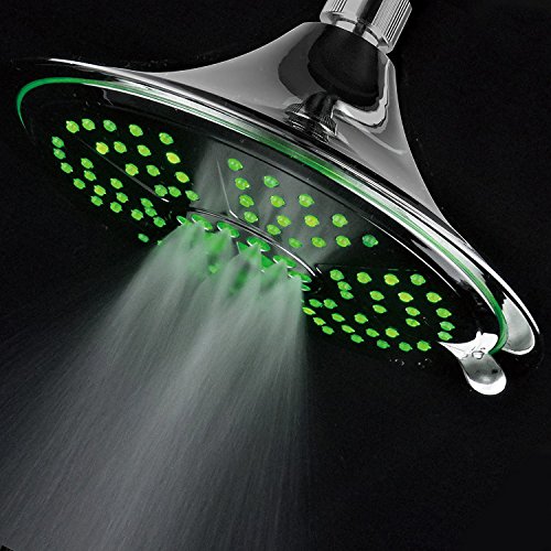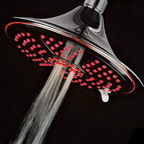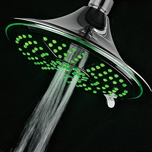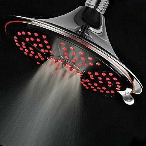 DreamSpa Ultra-Luxury Extra-large 8 Inch Chrome Face 5-Setting Rainfall LED Shower-Head by Top Brand Manufacturer. Color of LED lights changes automatically according to water temperature by DreamSpa