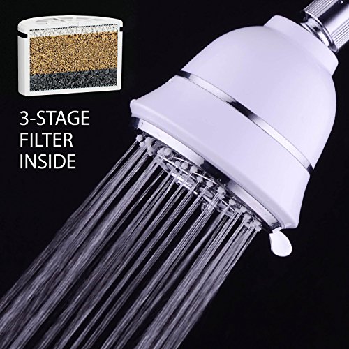 aquacare hotelspa ®によってフィルタシャワーヘッド面6 – 4 -インチクロム設定のシャワーヘッドを3段階の水フィルターカートリッジ内部では、デュアルホワイト/クローム仕上げ – この豪華な濾過シャワーヘッドはシャワーヘッドデザインの中に最新の水ろ過最高のテクノロジーにも対応しています。。高出力6-settingシャワーヘッドの3ステージKDF /活性炭フィルタカートリッジの内側の驚愕のシャワーhotelspa ®経験を提供!