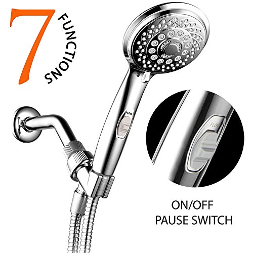 HotelSpa ® AquaCareシリーズシャワーで便利Luxuryパッケージ: 7-settingハンドヘルドshower-head特許取得済みon / off停止スイッチ、extra-longホース&ボーナスlow-reachブラケット