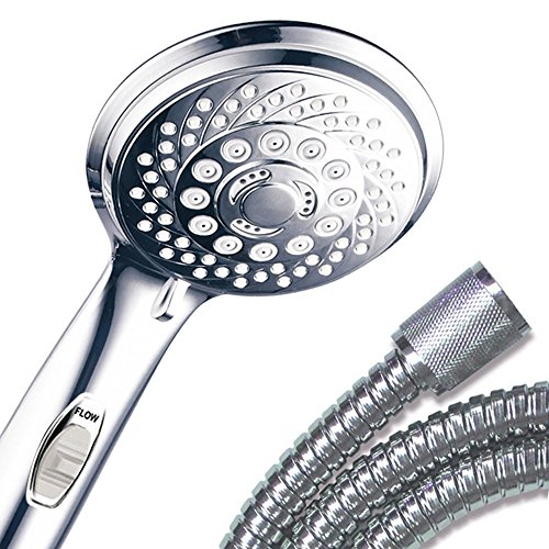 HotelSpa® 7つの設定 超高級手持ちシャワーヘッド 特許取得済みのオン/オフ停止スイッチ付き つや消しニッケル/クロム