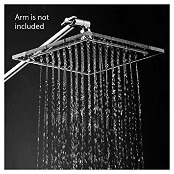 HotelSpa Squareステンレススチール8 Inchシャワーヘッドクリアアクリルリム( withoutアーム)
