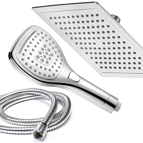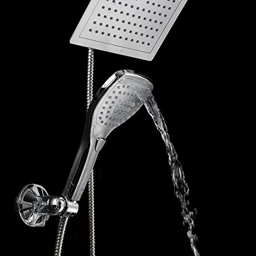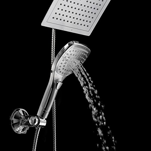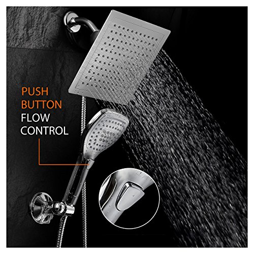 - NEW RAINFALL SHOWER COMBO WITH PUSH-BUTTON CONTROL FLOW CONTROL: Use luxurious rainfall shower head for drenching Rainfall Showerhead, or pamper with new state-of-the-art hand shower featuring convenient push-button flow control Hold the Handheld Shower and switch its flow settings with the same hand! No dial to turn, SIMPLY PUSH THE FLOW-CONTROL BUTTON with your thumb!