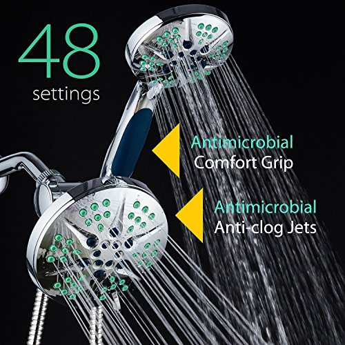notilus抗菌高圧Luxury 3 - in - 1雨シャワーSpaコンボ – 48設定、2-zone抗菌anti-clogノズル、抗菌滑り止めグリップ、ステンレススチールホース/ all-chrome仕上げ