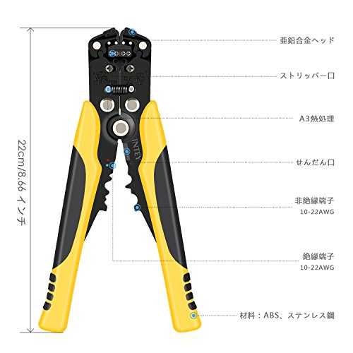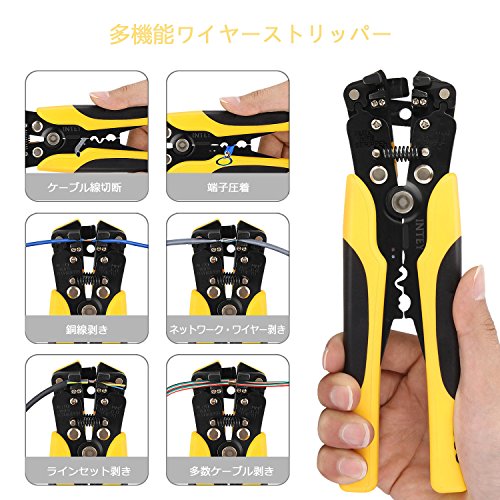 Intey ワイヤーストリッパー 端子圧着 圧着ペンチ ストリップ線径自動調整 絶縁閉端子 ケーブル切断 ワイヤーカット ラインセット ラインを破壊しない 多機能 高品質鋼 耐久性 配線作業