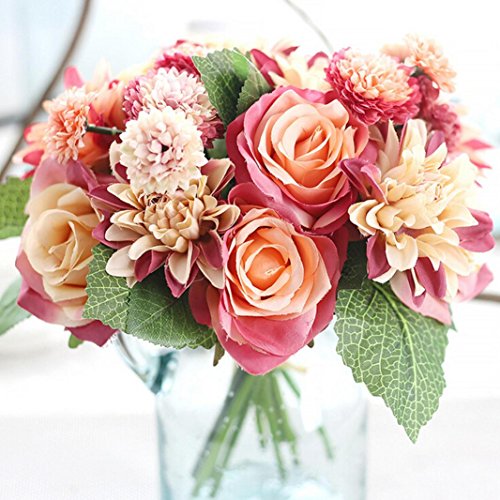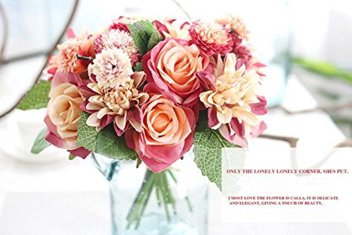 inverlee人工フェイク花シルクリーフローズ花柄ウェディングブーケパーティーホームインテリア レッド