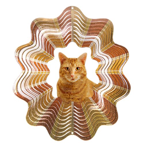 Iron Stop Tabby Cat Wind Spinner ,オレンジ 10インチ D450-10