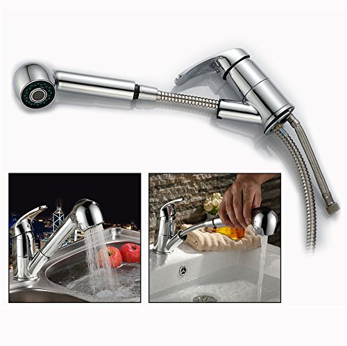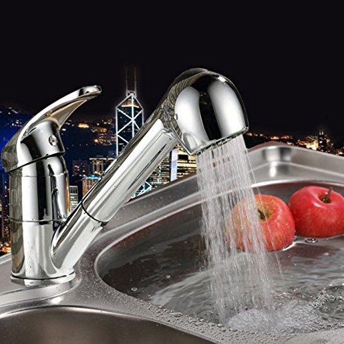 Itian キッチン用水栓 伸縮ハンド 引き出せる キッチンや洗面両用 冷熱混合水栓 任意の角度回転可能 エコシングル水栓 シャワータイプ 洗面水栓 2wayの吐水式 取り付けホース