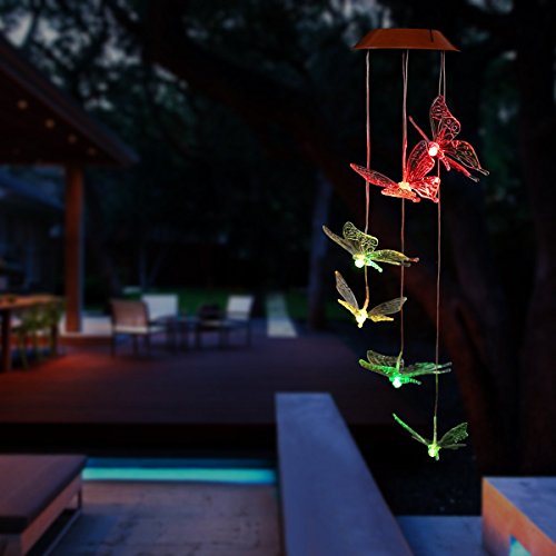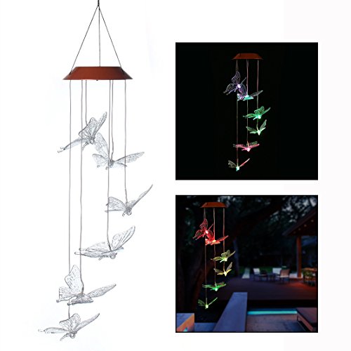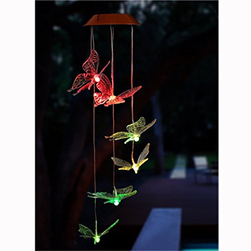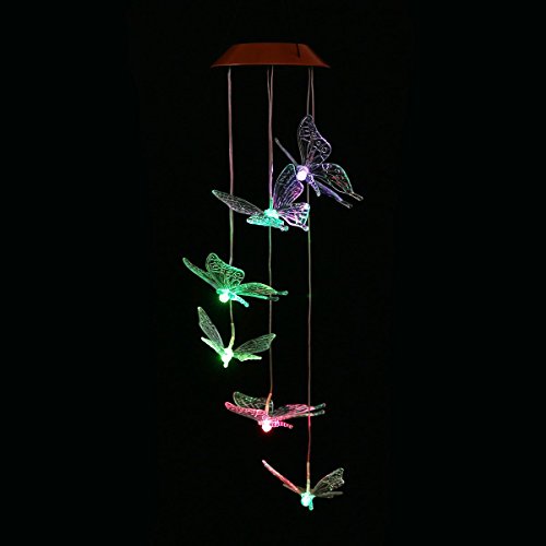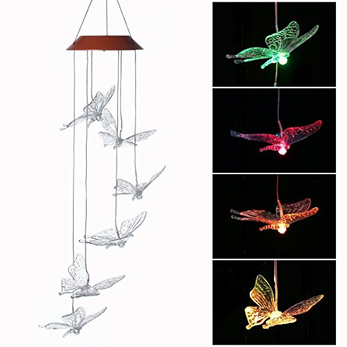 Itian ソーラー風鈴ライト 飾り用ライト クリスマスライト 風鈴搭載 防水 色が自動変更 庭園灯 夜間自動点灯 光センサー 配線不要 どこにでも簡単設置 (蝶型)