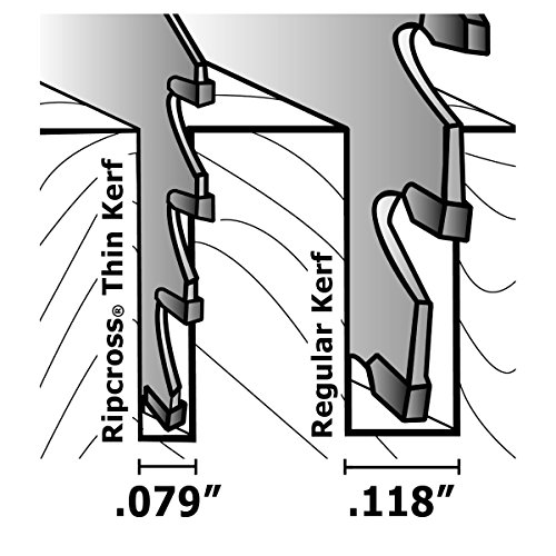 Arbor: 5/8-inch diamond knockout, Kerf: 0.079-inch, Hook: 20-degree. IVY Classic Industries is dedicated to producing a comprehensive, quality line of power tool accessories and hand tools. IVY Classic Ripcross Thin Kerf Circular Saw Blades are designed for smooth, efficient ripping and crosscutting in plywood, composition board and hard and soft woods. These hard-body blades are constructed for their outstanding cutting performance and feature alternate top bevel ground C3 modified tungsten carbide teeth. The thin kerf reduces friction and drag while the anti-kickback design ensures consistent chip removal.