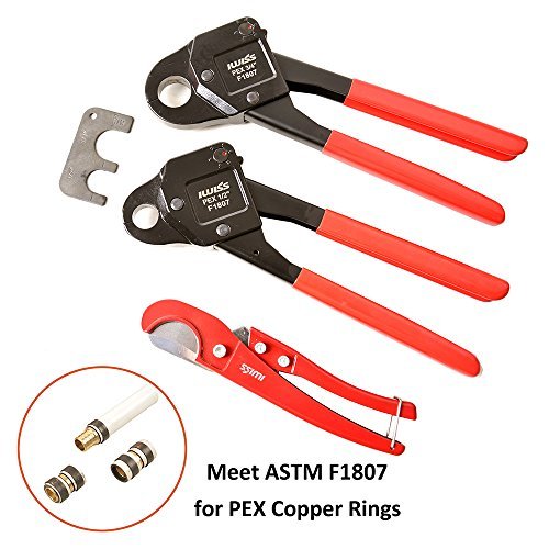 2のセットIwiss Pex Crimper圧着ツールwith 1 / 2 " & 3 / 4 "角度with" go-no Go" Calibrateゲージツール1つPexパイプチューブカッターfor Free