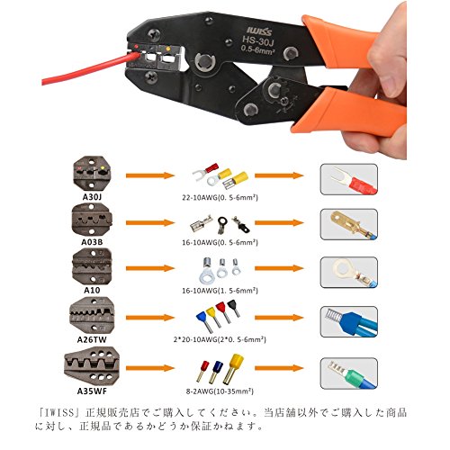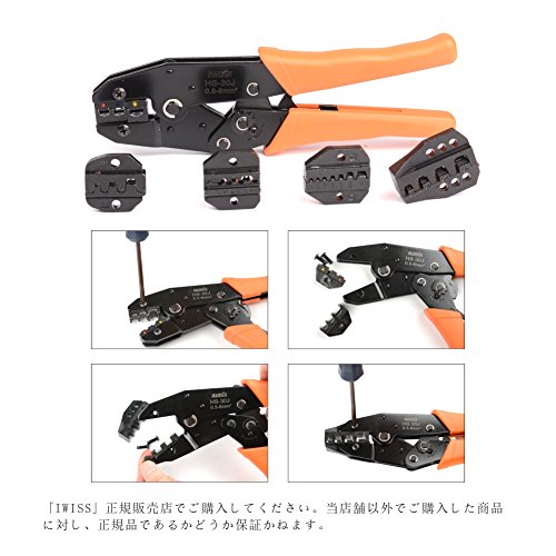 IWISS 電工圧着ペンチセット 電工ペンチ ペンチ 端子圧着ペンチ 絶縁閉端子使用され ドライバーと5つの交換用ダイス付属 高炭素鋼製 耐久性 配線作業