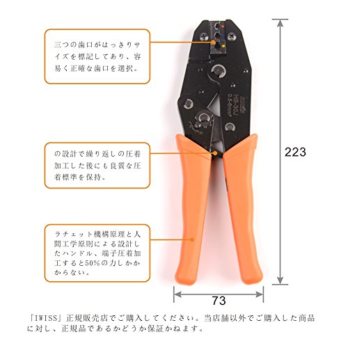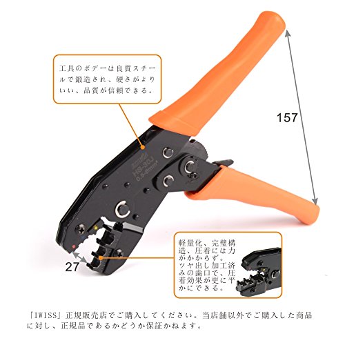 IWISS SN-01BM 極小ギボシ端子 2.54mmピッチ専用 オープンバレル端子用 384N 圧着工具 ラチェット機能付き0.08-0.5mm2
