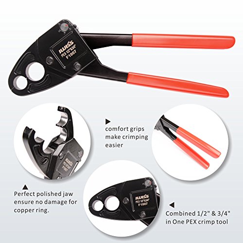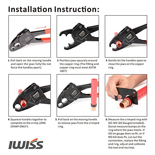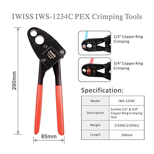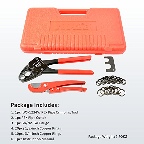 IWISS PEXパイプ圧着ツールキットused for 1 / 2 " & 3 / 4 " PEXクリンプwith Go/no-goゲージwith 20個1 / 2 " & 10個3 / 4 "銅リングwith PexパイプカッターSuitsすべてUS f1807標準仕様