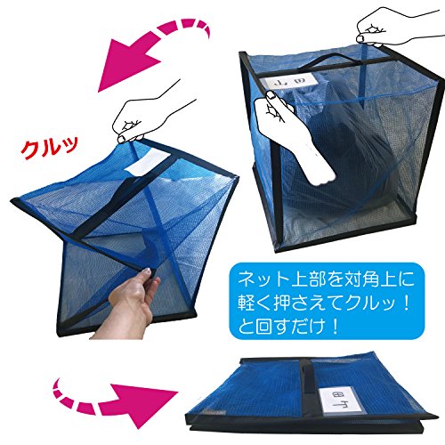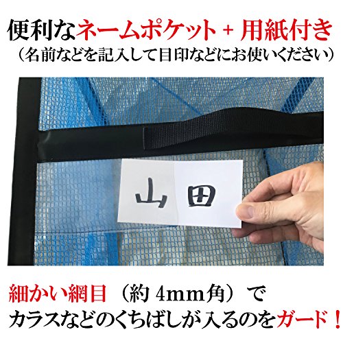 - ネット周囲にワイヤー入り、クルッと回すと薄く畳めて便利。名前などが書ける用紙プラス透明ポケット付。