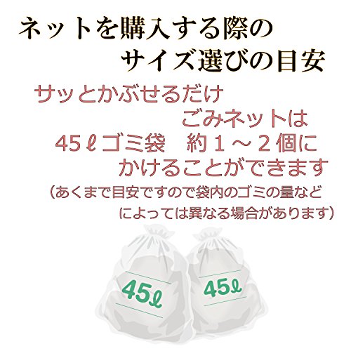 - ゴミ袋の上からサッとかけるだけでカンタン!細かい4mm網目でカラスや猫、犬などからしっかりガード。周囲に括り付けできるひも付。