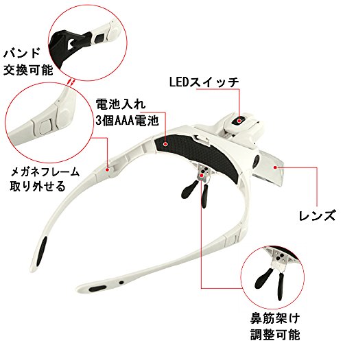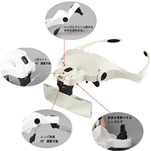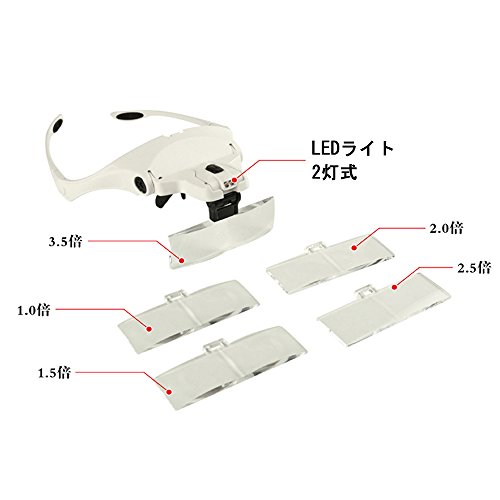 - 倍率(倍):1倍/1.5倍/2倍/2.5倍/3.5倍、レンズ 合計5枚で交換可能。 仕様:双眼鏡、眼鏡型