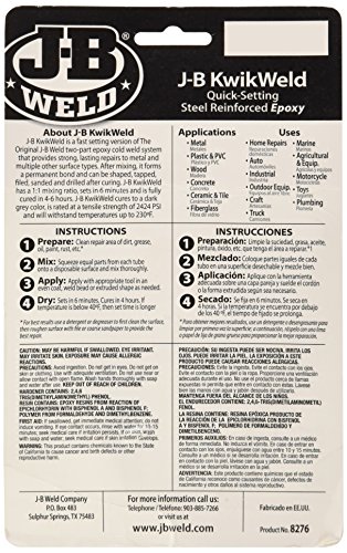 ●用途 金属、木材、セラミックス、ガラス、プラスチック(ポリエチレン、ポリプロを除く)を含むほとんどのものを固定、充填、接着します。 自動車、ボート、農園・園芸用具、家の補修、配管、手工芸に。 ●特長 同量を混ぜるだけ、速乾タイプでクランプも不要。使用法が簡単で4時間で硬化、耐熱温度148℃まで。 ●使用法 板紙など処分できるきれいな板の上でチューブから同量を絞り出した2液をよく混ぜます。 接着面はホコリや油分を取り除きます。シンナーで拭いたり、サンドペーパーですっておくことをお勧めします。 接着面に塗って押えます。