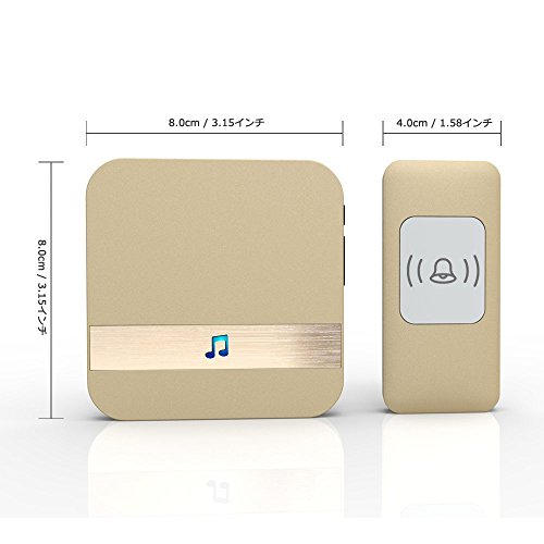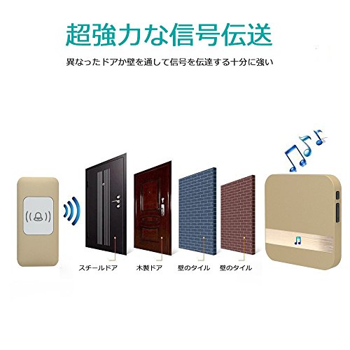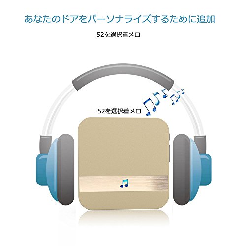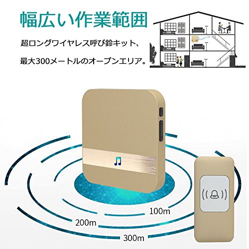 ワイヤレスチャイム インターホン チャイム センサー 呼び鈴玄関 防塵 チャイム 52種類のチャイム音選択可 最高300Mの無線範囲 受信機1個 送信機1個 (ゴールデン)