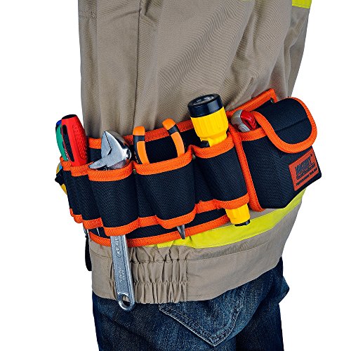Improve work efficiency, protection tool, portable tool kit; Oxford cloth and thicken design, wear waterproof; Multi-pocket and multi-sidekicks design, easy to use tools, finishing,portable; The bottom thickened, Bear the large weight , durable. High-end tool waist bag Material 600D oxford fabric Application: Assembly and rapairing of household appliances,elevator and other large mechanical,the equipment of broadband and the building construction. Notice :Tools not include