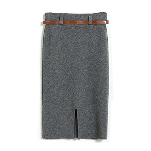 高品質のスカートの秋と冬の女性のカジュアルな長袖ニット膝ハイウエストスカートベルト付きのエレガントなスリムなペンシルスカート (グレー)