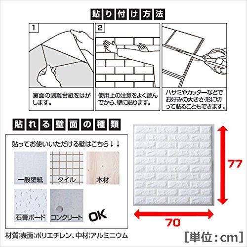 - 【種類】ウォール ステッカー レンガ調デザイン(レンガ風・レンガ柄・レンガタイプ)【サイズ】70cm×77cm【数量】10枚