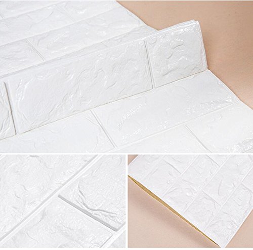 ブリック タイル レンガ 壁紙シール 70cm×77cm ブリックステッカー 軽量レンガシール 壁紙シール アクセントクロス ウォールシール はがせる 壁シール (お得10枚セット, ホワイト)