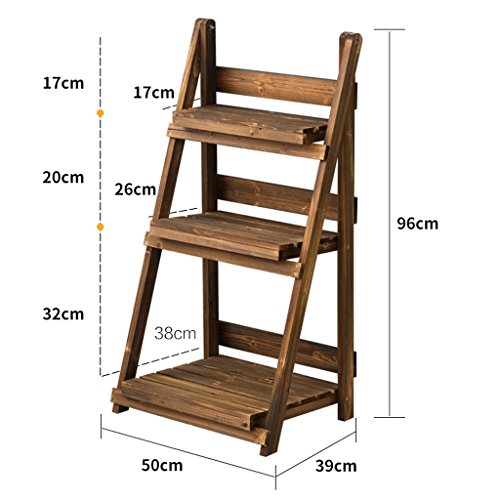 ADDAS 折りたたみ式マルチフラワースタンドプラントソリッドウッドフラワーポットシェルフ炭化炭化棟リビングルームフラワーシェルフ ( サイズ さいず : 50*39*96 cm )