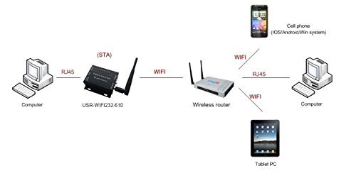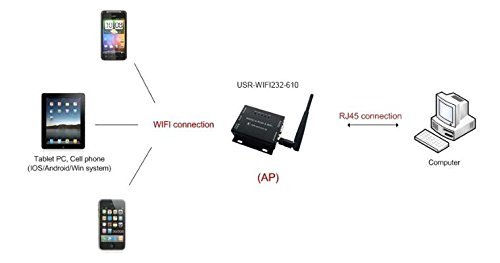 USR-WIFI232-610-V2は無線シリアルWIFIコンバータで、RS232 / RS485シリアル機器のWIFIまたはイーサネットネットワーキングへのプロジェクトに使用されます。それは、携帯電話やラップトップで制御することができますまた、リモートサーバーに接続することができます。シリアルWIFIコンバータの機能