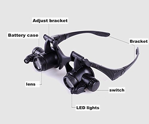頭部装着型の拡大鏡双眼鏡 ランプ付き 9892G 加工に使用電子式メンテナンス彫刻倍率10倍15倍20倍25倍