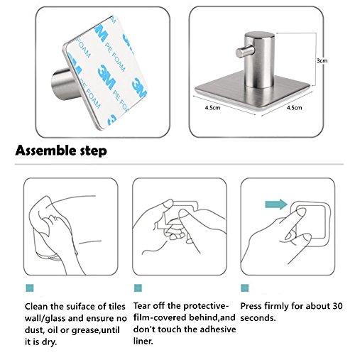 - 1を参照してください。[簡単取付] – タオルフックは製3 m強粘着性接着面だけ保護層を剥がし、背面、サーフェスドライに保ち、壁の汚れ、ペーストが目的の位置を変更することができます。