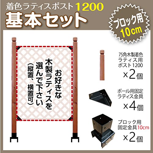 すぐ取り付けできて簡単設置。 セット内容 ・着色ラティスポスト1200×2本 ・サイズ:(約)1200×72×72mm ・材料:杉 ・重量:(約)2kg ・ポール固定ラティス金具(aks-35397)×4 ・サイズ:70×70×35mm ・重量:120g 取付用ビス付 ・ブロック用角ポール(75mm)固定金具 10cm用×2 72mm角と75mm角のポール両方ともにお使いいただけます コンクリートブロックの幅10cmに対応します ご注意 ラティスフェンスはセット内容に含まれていません。 ラティスフェンスを設置するために必要な部材のセット販売となります。