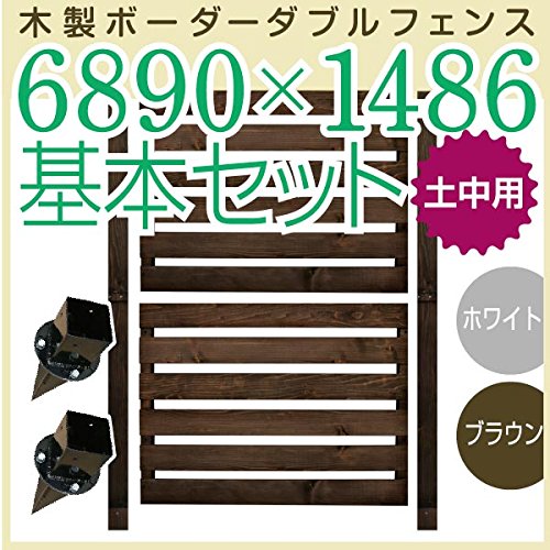 JJPRO-HOME 木製ボーダーダブルフェンス6890×1486基本セット ホワイト/ブラウン(土中用金具セット)(aks-17543-17581) ブラウン