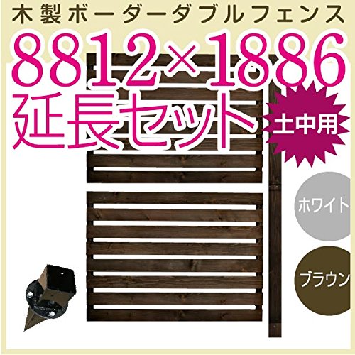 JJPRO-HOME 木製ボーダーダブルフェンス8812×1886延長セット ホワイト/ブラウン(土中用金具セット)(aks-17734-17772) ブラウン