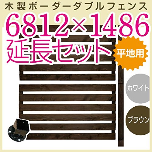 JJPRO-HOME 木製ボーダーダブルフェンス6812×1486延長セット ホワイト/ブラウン(平地用金具セット)(aks-17796-17833) ブラウン