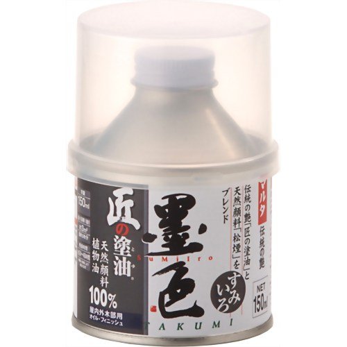 ●【商品説明】●「マルタ 匠の塗油 墨色 150ml」は、α-リノレン酸を豊富に含む純正荏油をベースに植物油を原料とする木部専用・浸透性の天然エコワックスです。●木の内部にじわりと浸透し、木質の持つ自然な艶を引き出す天然原料です。●有害な石油系化学物質、防腐剤、重金属を一切添加していません。●ただ塗るだけで、伝統の黒色をいきいきと表現することができます。●商品のお届けについて:こちらの商品は空輸禁止商品です。●北海道ならびに沖縄への発送は、お届け予定日よりも遅れる場合がございます。●【使用方法】●1.木地表面のホコリ・ゴミ・ヨゴレ等をあらかじめ拭き取ってください。●(1)塗油を布にしみ込ませ、木地にすりこむように薄く伸ばしてください。●(2)木の表面の油分を別の乾いた布で充分にふき取ってください。●・通常、1回塗りだけでじゅうぶんな仕上がりとなります。●後は、お好みの仕上がり色を得るため塗り重ねることも可能です。●・塗りすぎにご注意ください。●(塗りすぎるとベタベタして乾きません)・塗油をしみ込ませた布は、使用後速やかに水に浸して処分してください。●(自然...