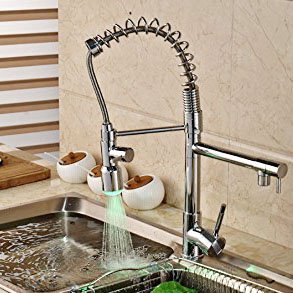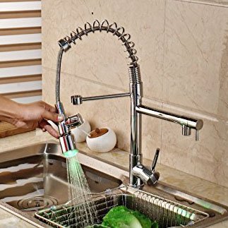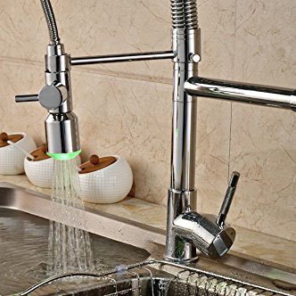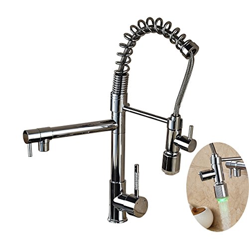 Rozin LEDライト 台所用 蛇口 クロームメッキ キッチン シンク用 混合栓 プルアウトスプレーノズルを