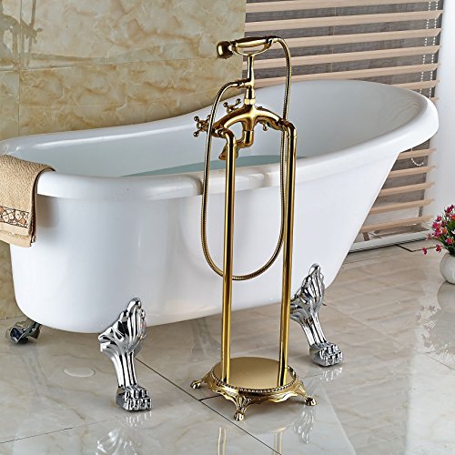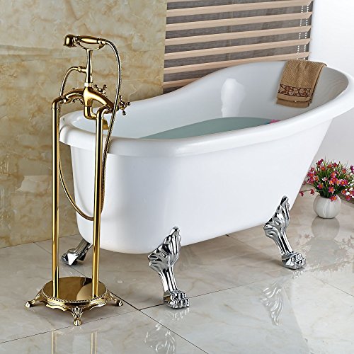 Rozin メッキ 電話スタイル 風呂桶 湯船 浴槽用 混合水栓 じゃぐち フロア立ち シャワー 浴池用 蛇口