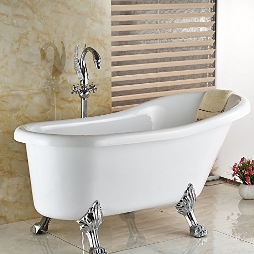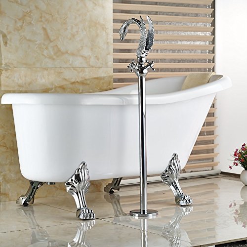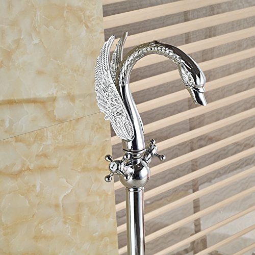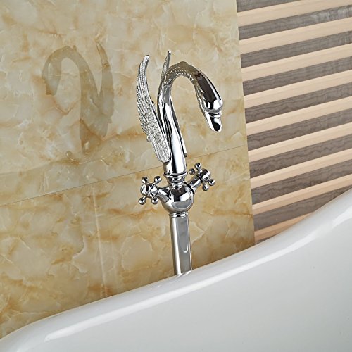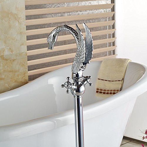 Rozin 白鳥の形 風呂桶 浴槽用 蛇口 クローム フロア立ち シャワー 浴池用 混合栓 じゃぐち