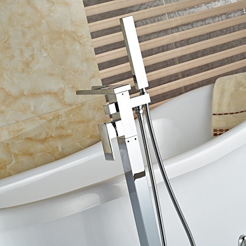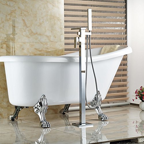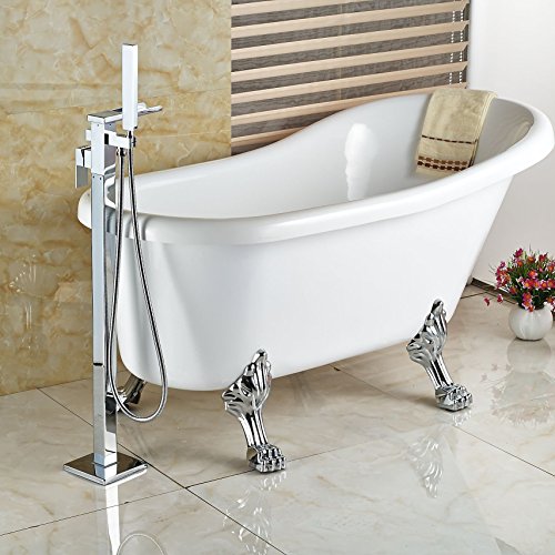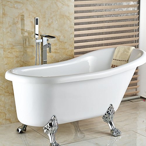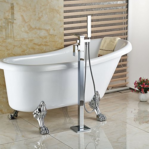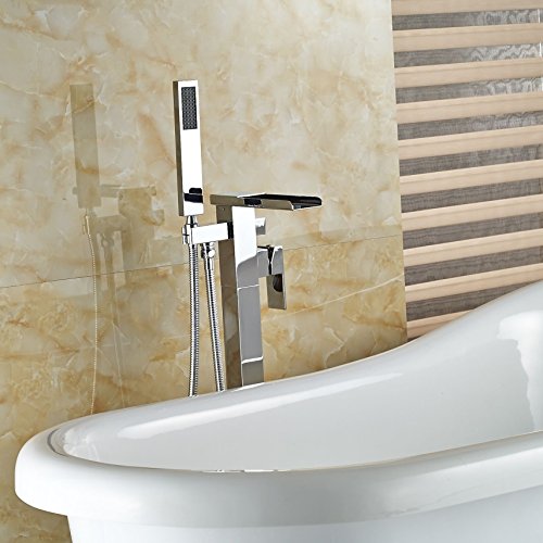 Rozin クローム 滝型 バスタブの蛇口 ハンドシャワー装備 フロア立ち シャワー 浴池用 混合栓 じゃぐち