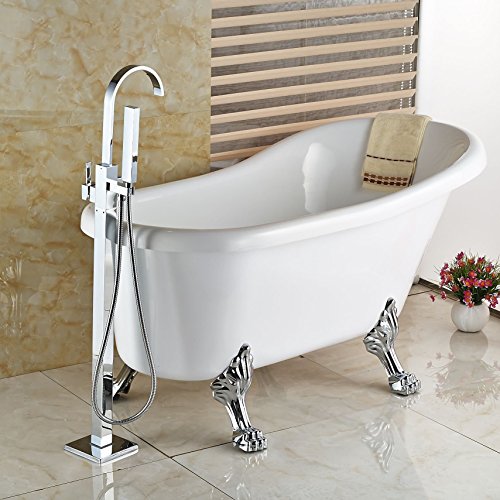 Rozin フロア立ち 風呂桶 浴槽用 蛇口 クローム シャワー 浴池用 混合栓 じゃぐち ハンドシャワー装備