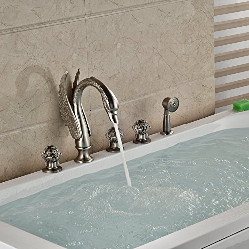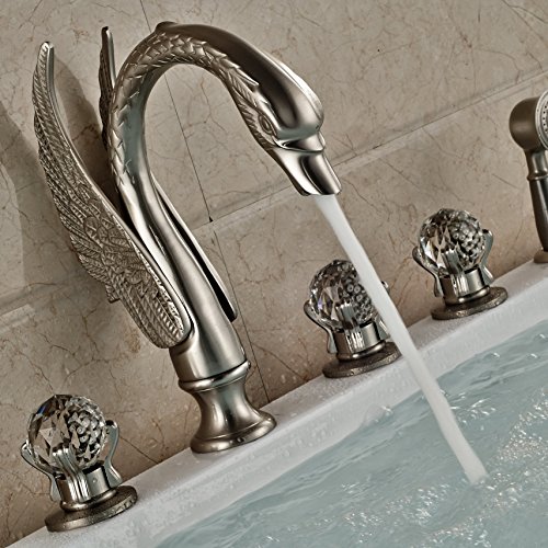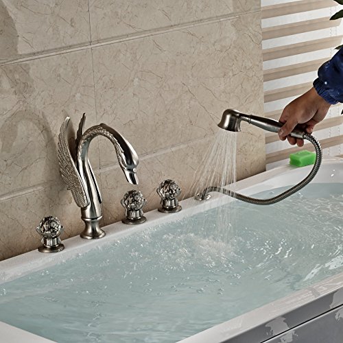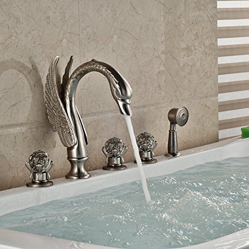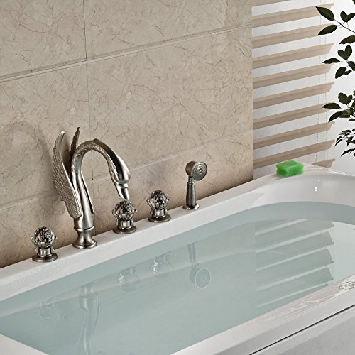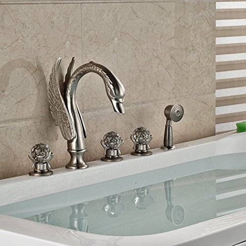Rozin 白鳥の形 浴室 バスタブ用 蛇口 糸ひき クリスタル 浴槽 風呂用 混合水栓 じゃぐち ハンドシャワー装備