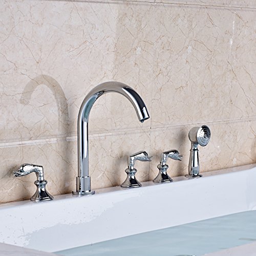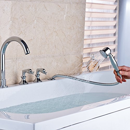 Rozin クロムめっき 浴槽 風呂桶用 蛇口 ハンドシャワー装備 現代のスタイル 風呂 バスタブ用 じゃぐち 混合栓