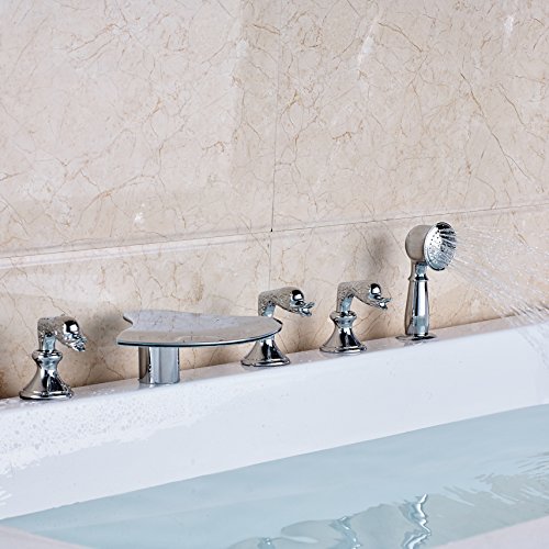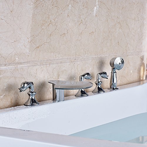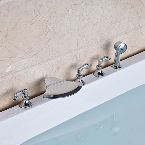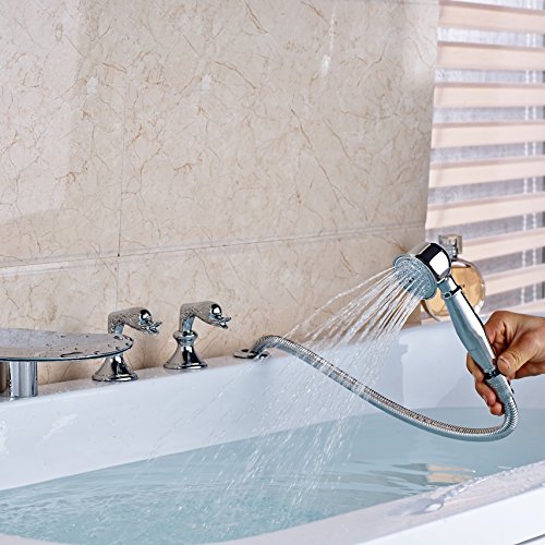 Rozin クロムめっき 浴室 バスタブの蛇口 ハンドシャワー装備 浴槽 風呂桶用 じゃぐち 混合栓