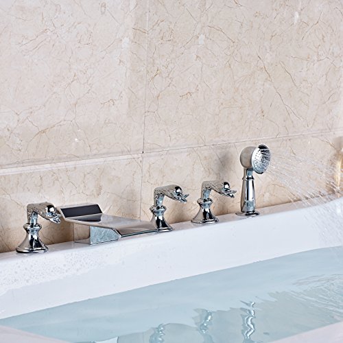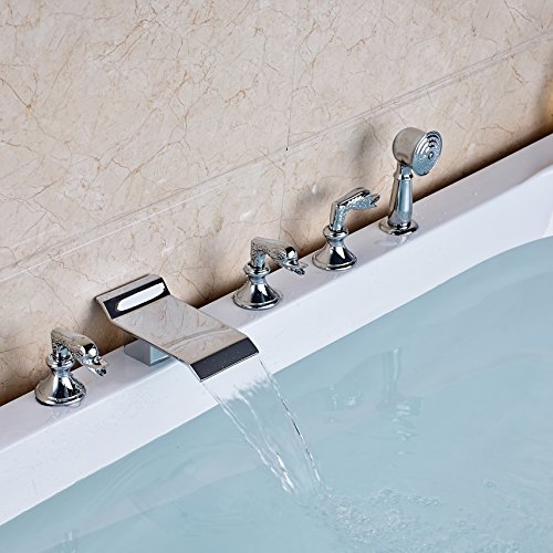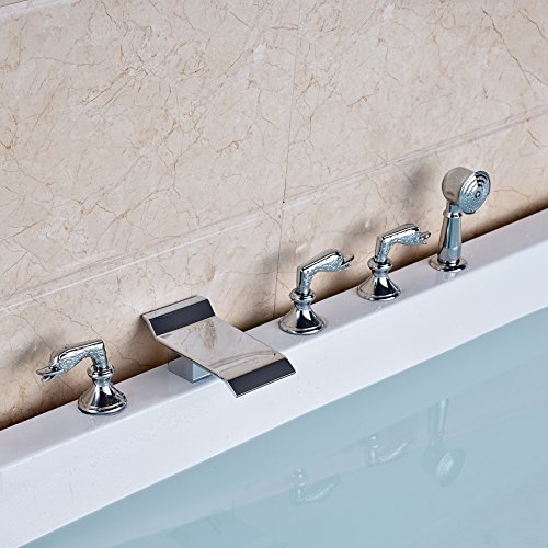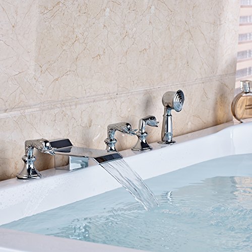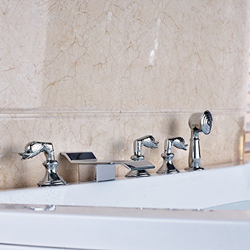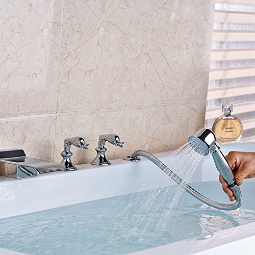 Rozin 浴槽 風呂桶 用 蛇口 混合水栓 クロムめっき 滝型 ハンドシャワー装備 風呂 バスタブ用 じゃぐち