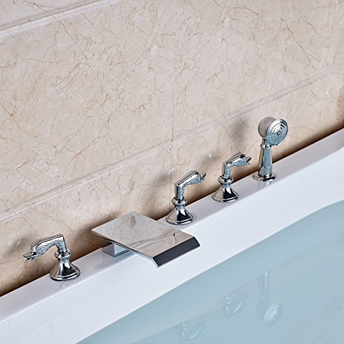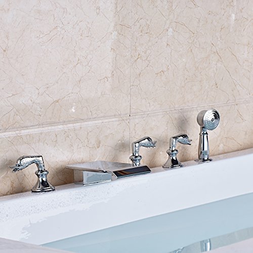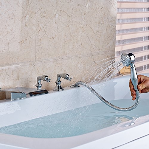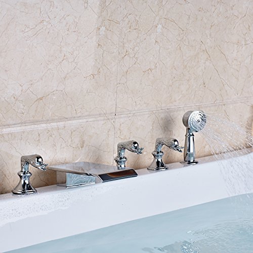 Rozin 現代のスタイル バスタブの蛇口 ハンドシャワー装備 クロムめっき 浴槽 風呂桶用 じゃぐち 混合栓