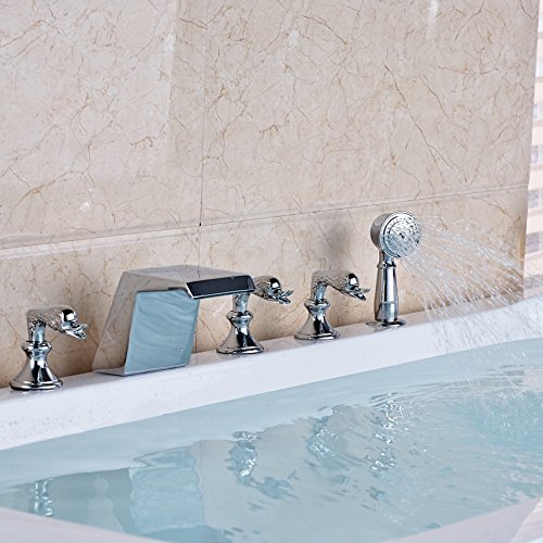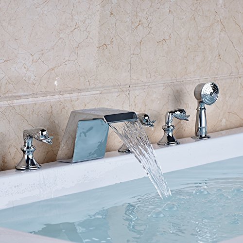 Rozin 浴槽 風呂桶 用 蛇口 混合水栓 現代のスタイル クロムめっき 滝型 風呂 バスタブ用 じゃぐち ハンドシャワー装備