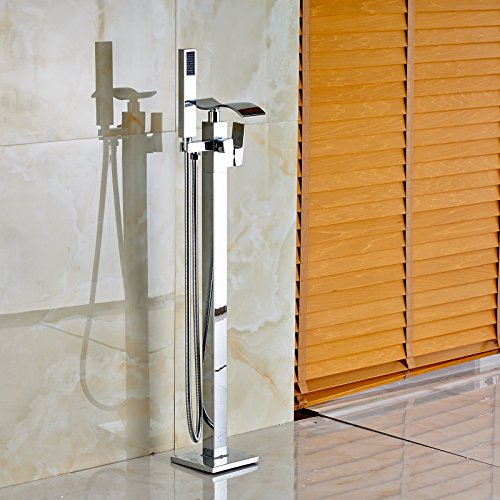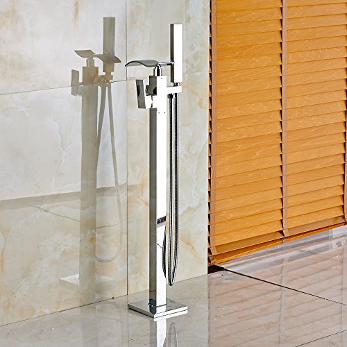 Rozin クロムめっき 浴槽 湯船 風呂桶用 じゃぐち 混合水栓 ハンドシャワー装備 滝型 バスタブの蛇口 フロア立ち