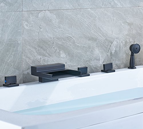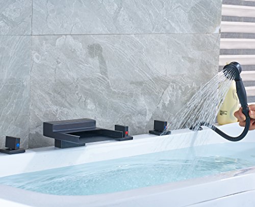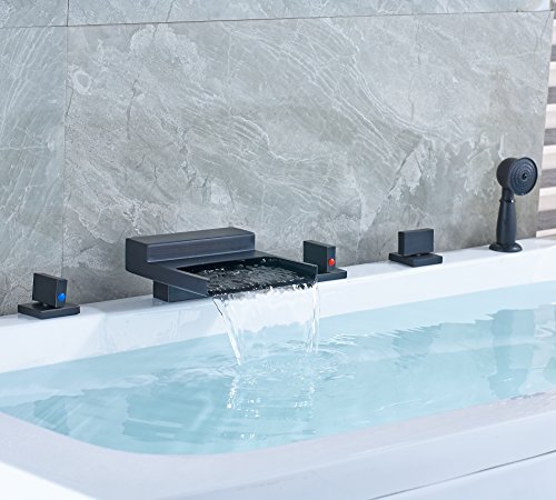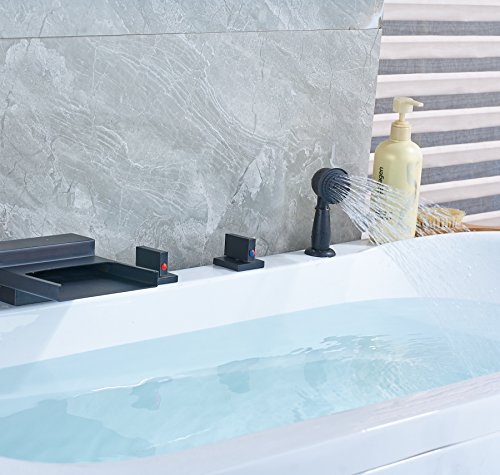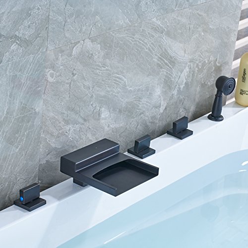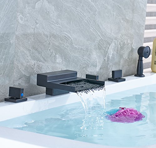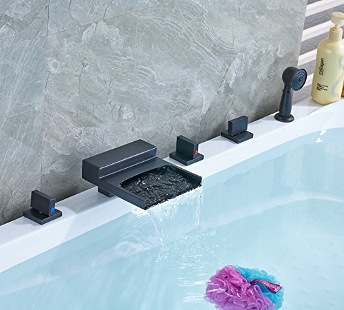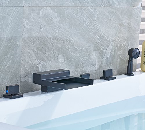 Rozin 滝型 バスタブの蛇口 混合水栓 ハンドシャワー装備 オイルは青銅をこすり 浴槽 風呂桶用 じゃぐち