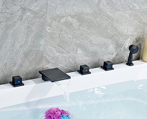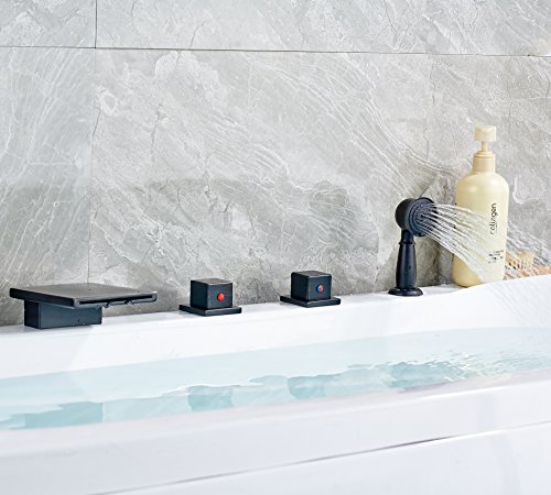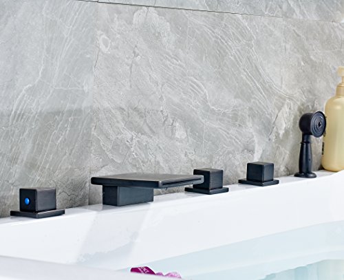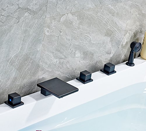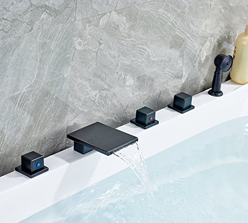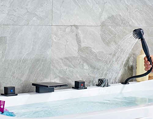 Rozin オイルは青銅をこすり バスタブの蛇口 混合水栓 滝型 浴槽 風呂桶用 じゃぐち ハンドシャワー装備