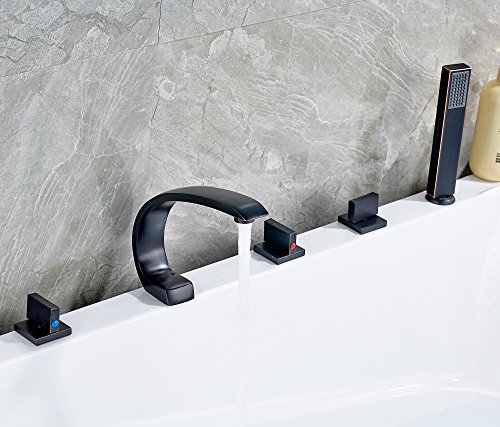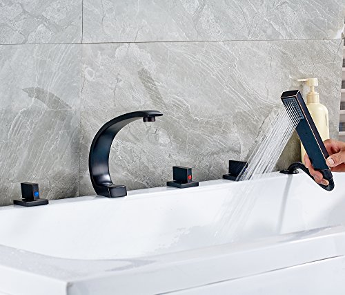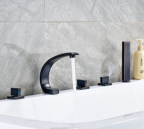 Rozin 欧州の様式 浴槽 風呂桶用 じゃぐち ハンドシャワー装備 オイルは青銅をこすり 滝型 バスタブの蛇口 混合水栓